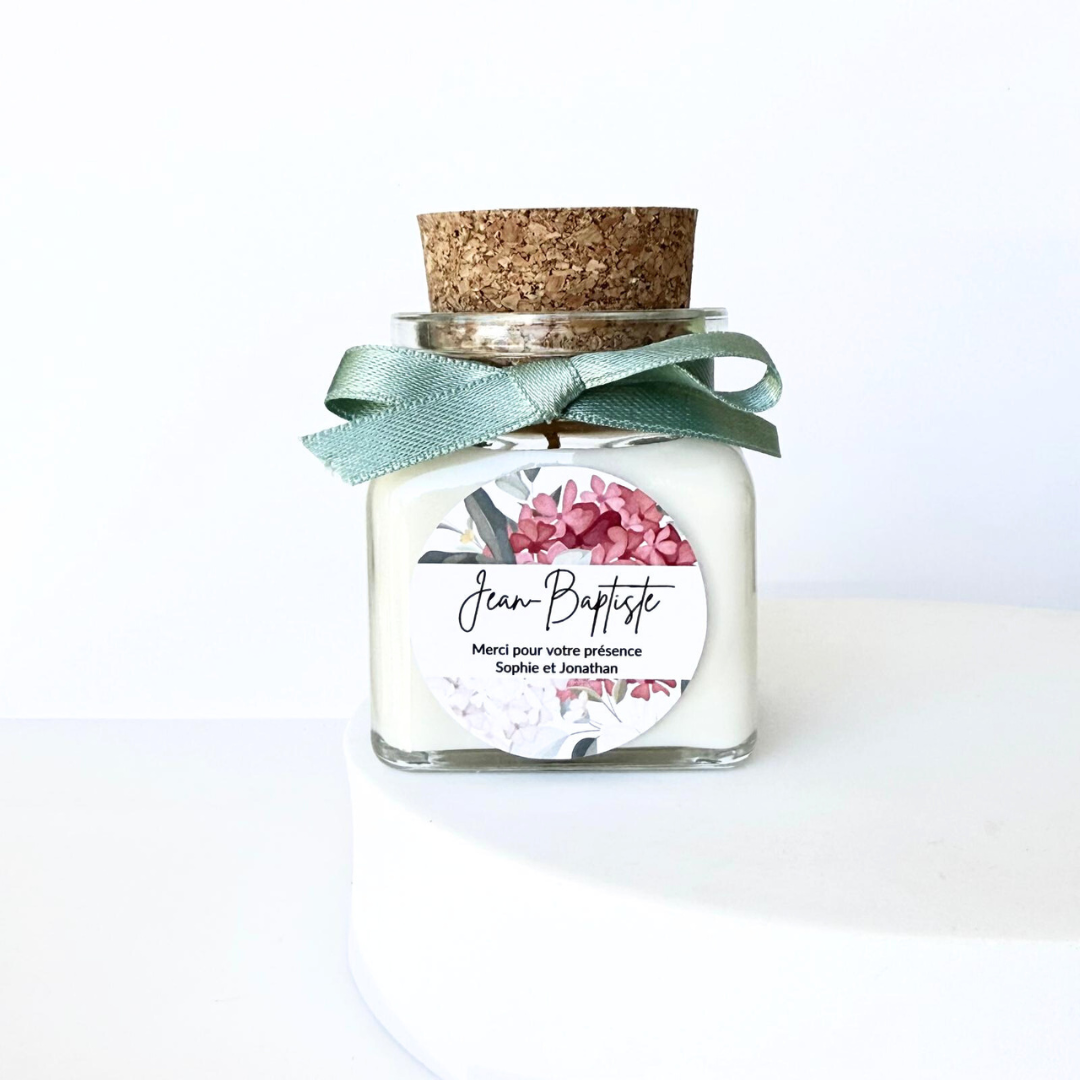 Faites de votre mariage un moment inoubliable en offrant cette bougie carrée personnalisée de 80 g. Élégante et raffinée, elle est présentée dans un pot en verre carré avec un bouchon en liège naturel qui lui donne un charme authentique. Avec de nombreuses options de personnalisation, cette bougie s’adapte à tous les styles et thématiques :