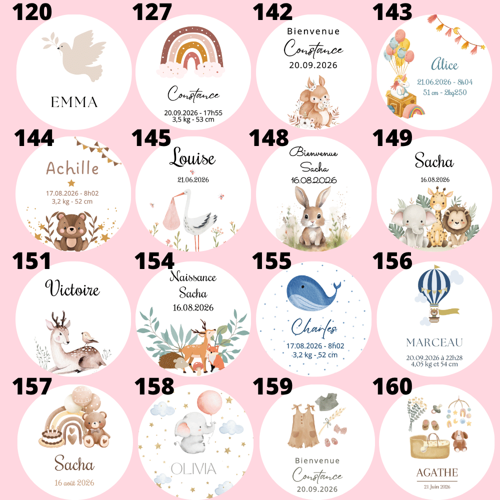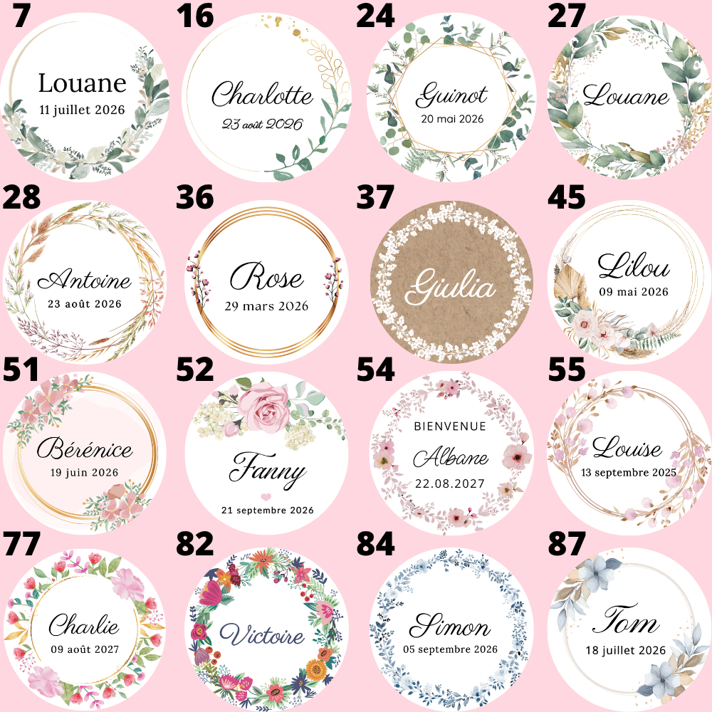 - Étiquette personnalisée : prénom, date de naissance, message, visuel